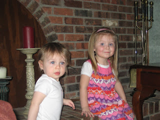 Once I got back to Mimi and Papa's, we stopped to show off the girls at Mimi's office for a few, then Mimi and I headed to a Sashay jewelry party while Papa and the cousins stayed home to play. The girls had a ball (and Papa too, of course, except for a couple 'gifts' Maggie made for him in her diaper...).