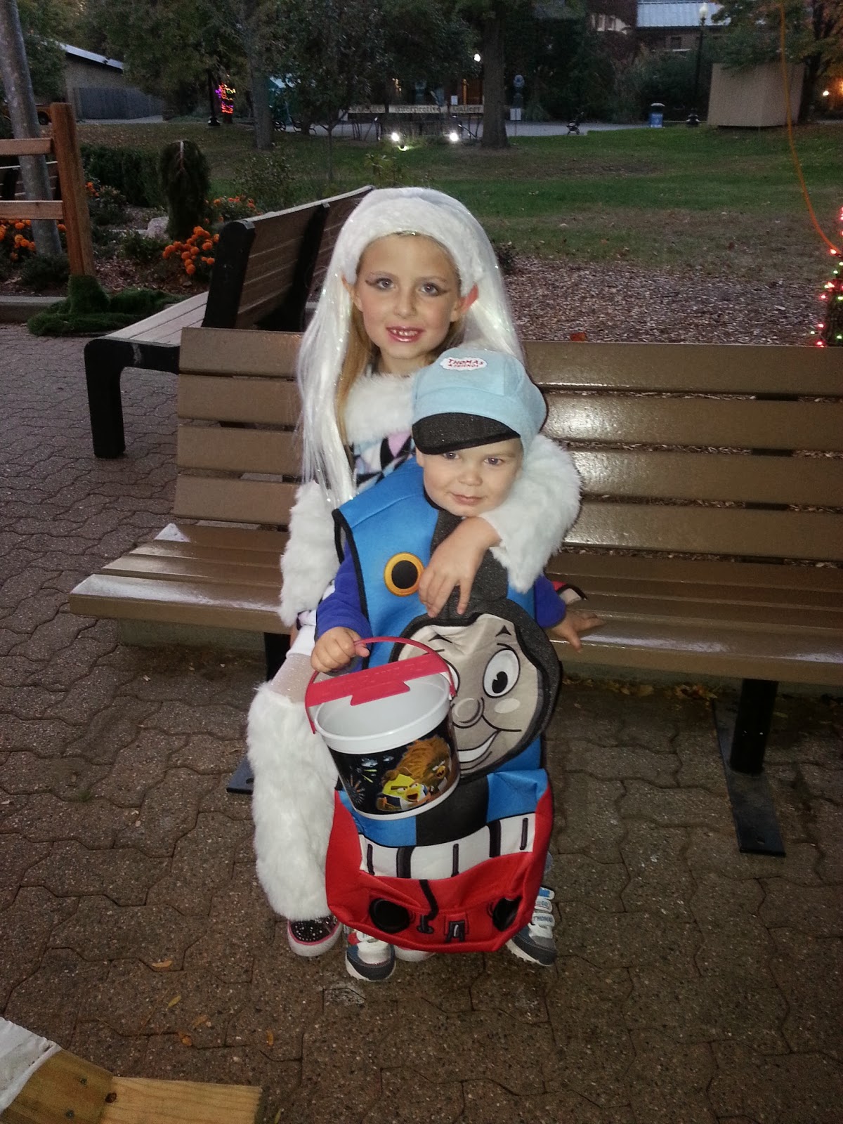 Armed with that, we headed to the Detroit Zoo's annual Zoo Boo on Friday night. Maggie was excited to don her Abby Bominable costumer, and of course there's no one Jack would rather be than Thomas the Train. In fact, Jack spent part of his evening chasing another Thomas costume, with a really cool bucket.